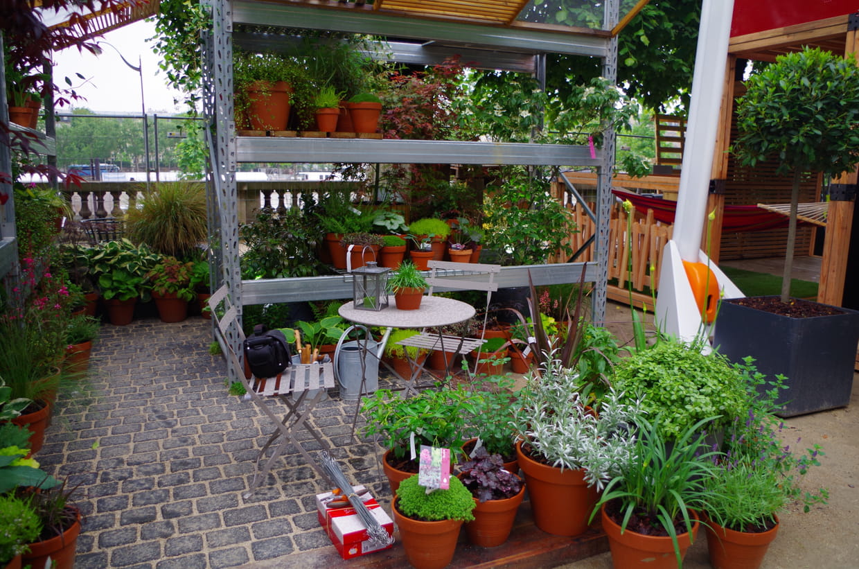 Ce jardin a remporté le prix Cité verte 2016 du concours de l'Innovation. Rock en folie ... Jardiner la ville est une création à implanter dans les cours des immeubles. Les bacs peuvent recevoir tous types de plantes. Disposés sur des étagères, les bacs permettent d'optimiser l'espace et d'avoir différentes plantes et en plus grande quantité. En plus d'être écologique, ce jardin est aussi économique puisqu'il est faible en consommation d'eau : l'arrosage des bacs en hauteur permet aussi celui des bacs des étagères inférieurs. Ce projet a été réalisé par le paysagiste DPLG Antoine Ruellan.
