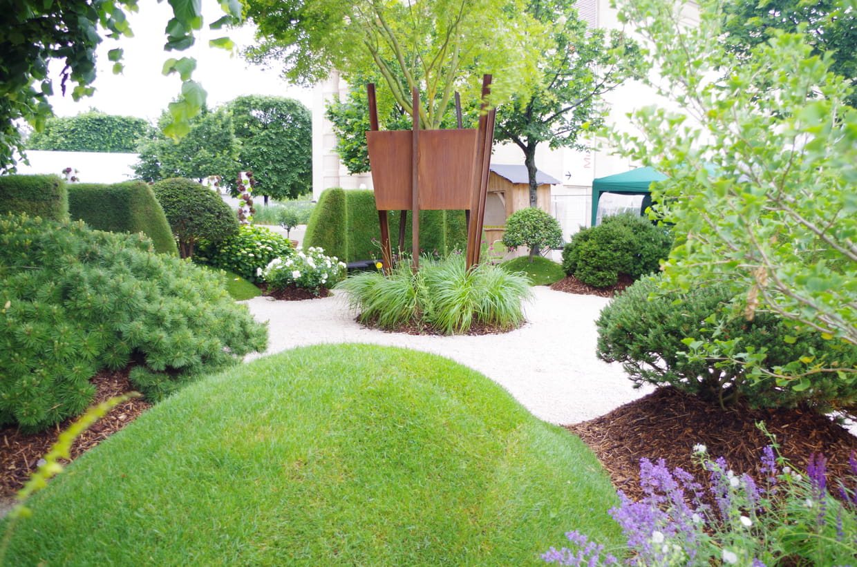 Conçu par Architecture & Jardin et Christian Fournet pour les Pépinières Lappen, la canopée clôture la visite du salon Jardins, jardin. Des buttes végétales composent le jardin. Ouvertes pour certaines, elles accueillent les promeneurs sur des bancs intégrés. Ce jardin se veut un lieu de paix et de bien-être.