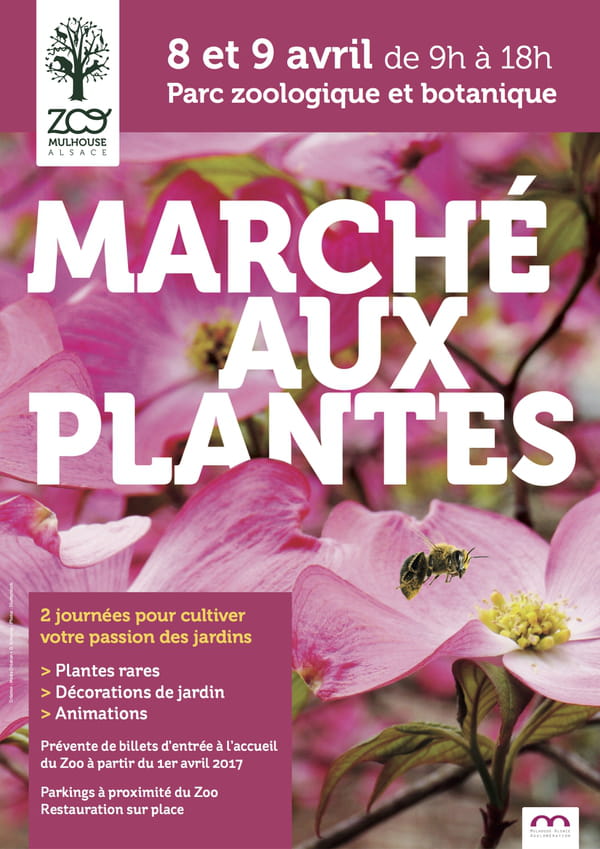 Le Parc zoologique et botanique de Mulhouse donne rendez-vous aux passionnés de jardin les samedi 8 et le dimanche 9 avril. Durant le week-end, des animations, des ateliers découverte, notamment d'espèces florales rares, des échanges et des balades au sein des 25 hectares du parc seront prévus. La décoration de jardin aussi est au rendez-vous pendant ces deux jours. Une soixantaine d'exposants français et internationaux seront présents pour se joindre à cette 15e édition du Marché aux Plantes de Mulhouse. Sur les différents stands, seront présentées et proposées à la vente de nombreuses espèces de plantes et de fleurs comme des clématites, des rosiers, des orchidées, des arbustes, des plantes aquatiques et bien d'autres encore. Des outillages de jardin, cartes postales florales et objets décoratifs pour l'extérieur sont à chiner tandis que les petits gourmands pourront profiter des divers stands alimentaires de confiseries artisanales, d'herbes aromatiques et de jus de fleurs à tester. Cet événement est un succès annuel puisqu'il a accueilli pas moins de 21 000 visiteurs en 2016.