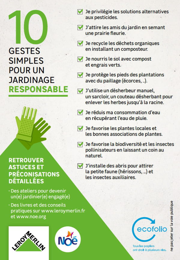 Dans 40 de ses magasins, et en partenariat avec l'association Noé, Leroy Merlin lance la Fête des Jardiniers pour sensibiliser les utilisateurs aux alternatives aux pesticides et au jardinage éco-responsable.