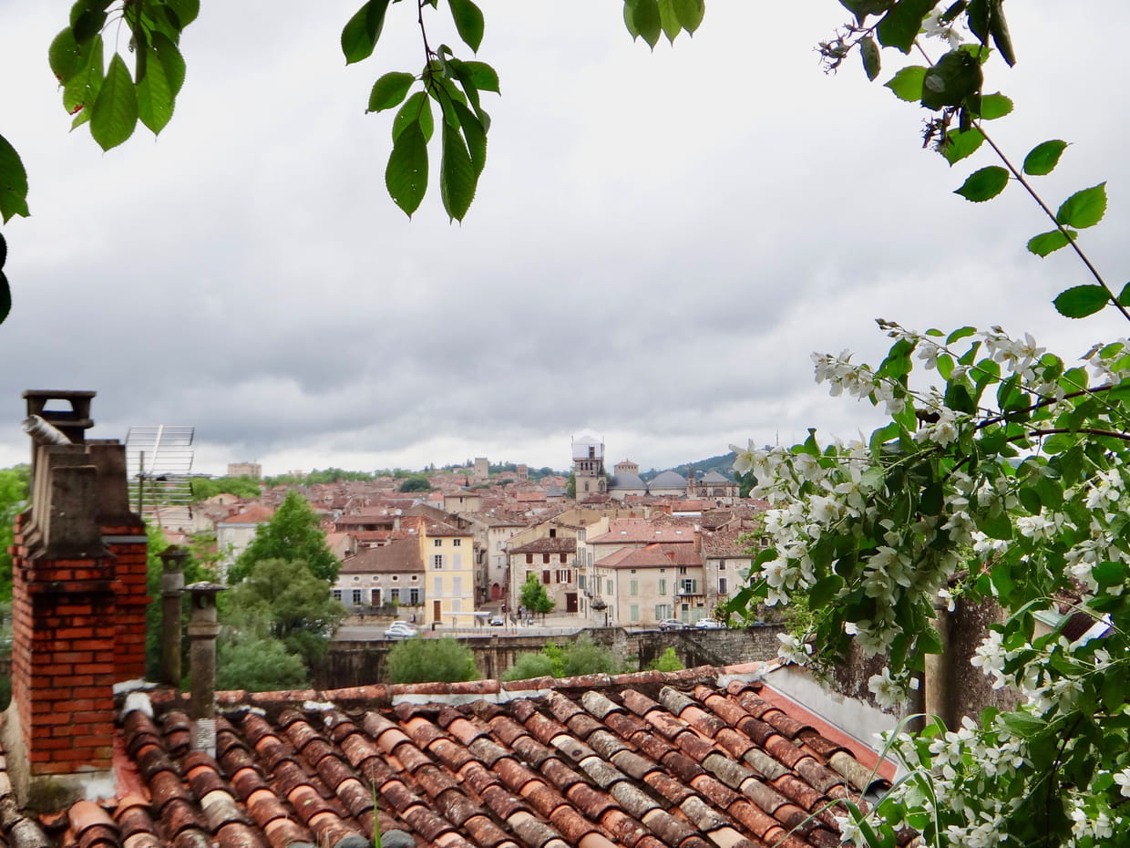 Le jardin perché porte bien son nom. Situé au-dessus du Lot qui serpente en contrebas, il offre une vue panoramique sur les toits de Cahors et son camaïeu de tuiles canal ocres.