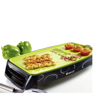 Brandt a conçu une plancha avec plaque en céramique couleur "végétal", pour que les aficionados des brochettes se fassent plaisir tout au long de l'année, même dans leur appartement.