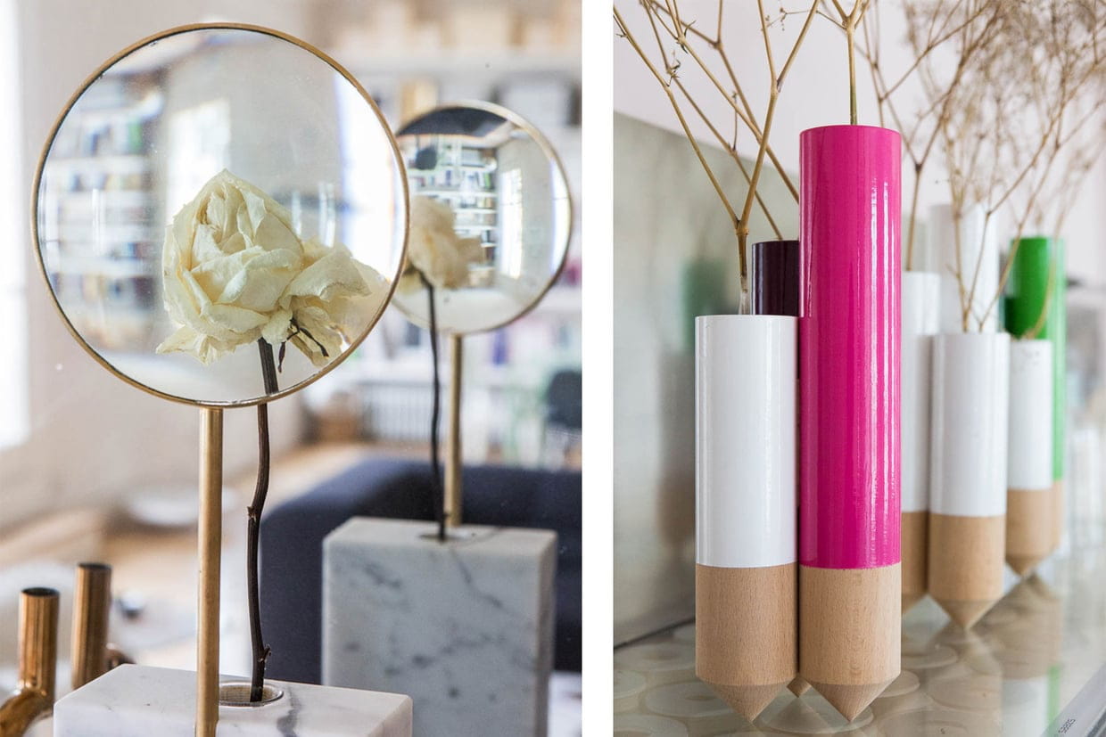 Un soliflore c'est bien, un modèle original c'est mieux. Preuve en est avec ce modèle original avec une loupe devant la fleur, permettant de la mettre en valeur. Mention spéciale aux pots façon "crayon de couleur" en triptyque qui semblent défier les lois de la gravité. Encore une fois, ces vases pourraient servir de déco à eux seuls. Voir le reportage