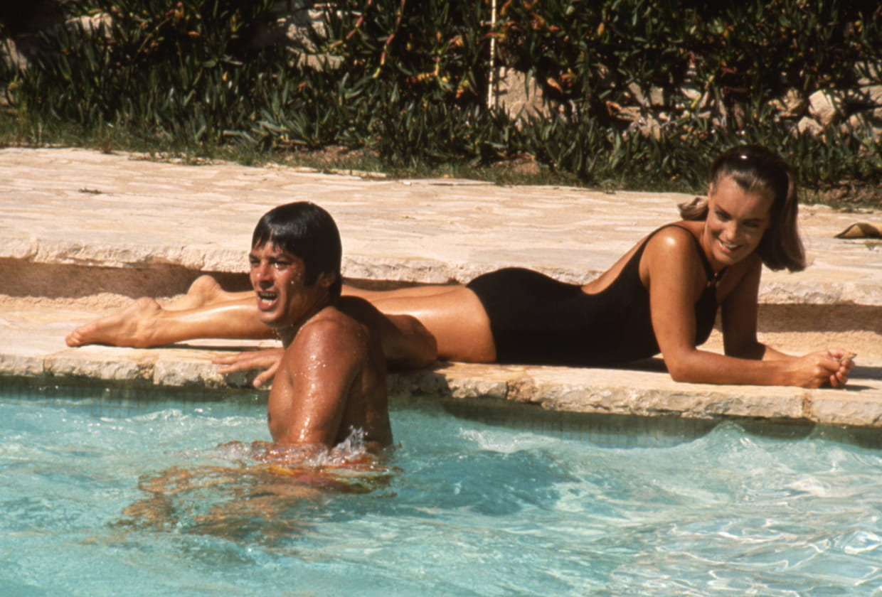 Alain Delon et Romy Schneider, sur le tournage du film La Piscine, de Jacques Deray, en 1968.