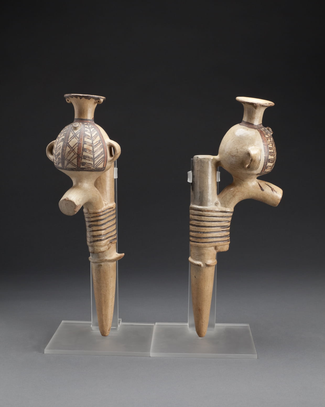 Objets rituels en céramique, les pacchas sont des "canaux" à liquides utilisés pour offrir la chicha, bière de maïs fermentée, à la terre. Versé dans un orifice supérieur, le liquide traverse l'objet et ressort par le bas. L'objet imite la forme de la chaquitaqlla qui est un outil agricole andin utilisé par les paysans pour retourner la terre. Les hommes trinquent ainsi avec la Terre-Mère pour célébrer la Pachamama et ainsi présager la bonne année agricole.