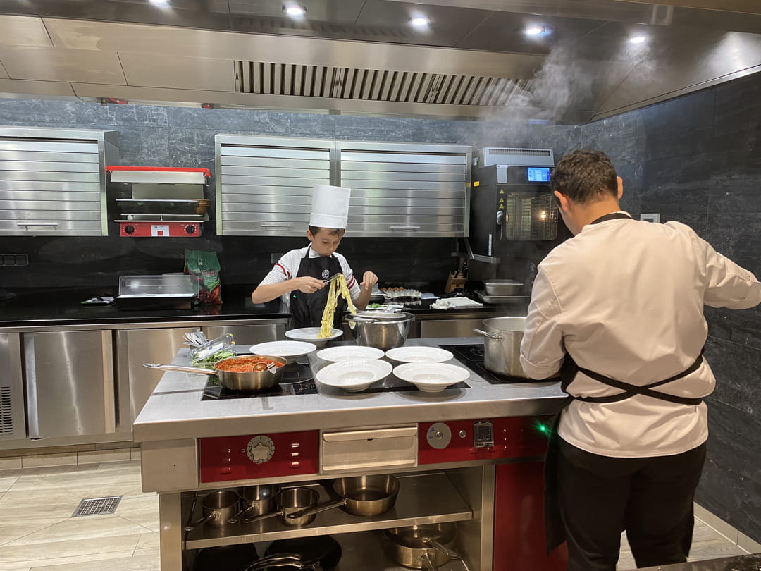 Le séjour se termine par un cours de cuisine proposé par le chef Luis Peral à l'espace Maïtena. Au menu, la réalisation et la dégustation de pâtes fraîches maison, d'une pizza et de desserts comme le succulent Banoffe ou le Brownie au chocolat, aux noisettes et