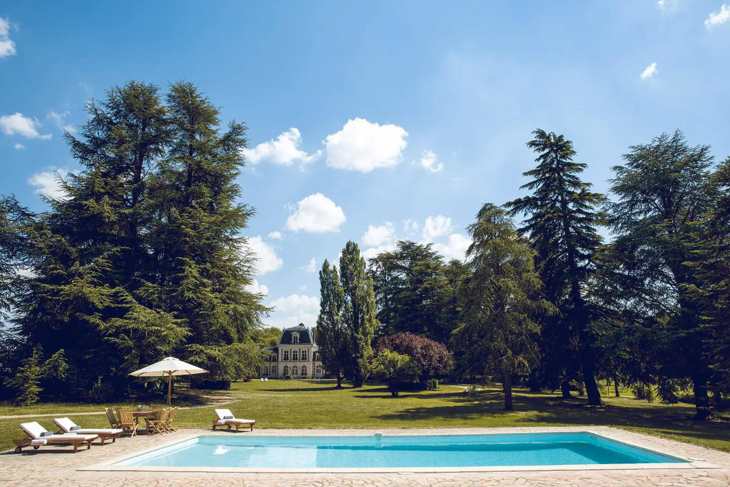 À l'extérieur, les atouts de la propriété ne manquent pas : grand parc pour se promener - les animaux sont acceptés -, vaste piscine avec transats et parasols, barbecue au charbon de bois et même des vignes car, oui, le domaine pourtant situé à deux heures de route de Paris, est parfait pour déguster du vin. Il se situe en Touraine.