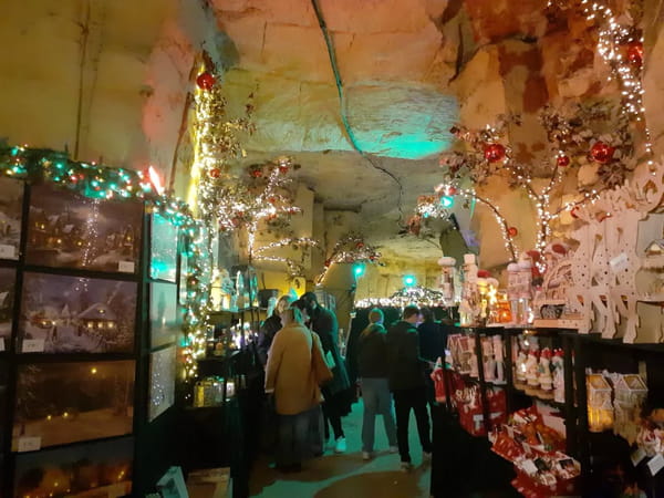 À mesure que les visiteurs s'engouffrent dans cette grotte aux tunnels lumineux, ils sont immédiatement plongés dans une ambiance à la fois intimiste et magique. Des peintures anciennes et des fresques délicates ornent les murs de ce marché au charme unique et les jeux de lumière mettent en valeur les reliefs de la pierre. Il est installé dans des galeries de marne centenaires, qui ont notamment servi de refuge au cours de leur histoire, et offre une température constante de 12 °C, de quoi s'offrir un chocolat chaud ou un vin chaud pour se réchauffer en faisant des emplettes.
