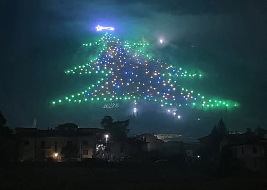A Gubbio, une ville de la région italienne d'Ombrie, un sapin de Noël format XXL s'illumine chaque année en décembre. Et il mérite le détour tant il est devenu emblématique. Il faut dire qu'il détient un record : celui du plus grand arbre de Noël du monde. Un titre décroché en 1991 lorsqu'il a été inscrit au Livre Guinness des records. Et les chiffres prouvent sa grandeur car il mesure 650 mètres, est composé de plus de 300 sources lumineuses, lesquelles sont reliées par 8500 mètres de câbles électriques. On le voit à des kilomètres à la ronde, précisément sur 50 kilomètres ! D'autant plus que le sapin est installé sur les pentes du Mont Ingino, donc très en hauteur.