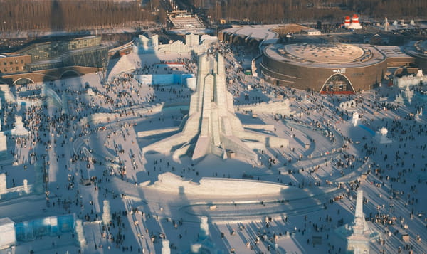 Des conditions "idéales" pour que ces édifices sculptés dans d'énormes blocs de glace extraits de la rivière Songhua puissent rester debout pendant quelques semaines, le temps que les voyageurs viennent déambuler dans cette ville artificielle. On y retrouve des rues pavées de glace, des remparts, d'immenses châteaux, des ponts et des sculptures monumentales. Un véritable royaume polaire, qui change tous les ans en fonction de la thématique, et qu'il est possible de visiter chaque année dans le cadre d'un festival qui se déroule entre fin décembre et mi-février. Mais où se trouve cette destination hors norme ? Il s'agit de la ville d'Harbin, grande métropole du nord-est de la Chine devenue célèbre pour son festival de sculptures sur glace ; parfois surnommée "Moscou d'Orient" pour son architecture inspirée de celle de Russie et son froid glacial.