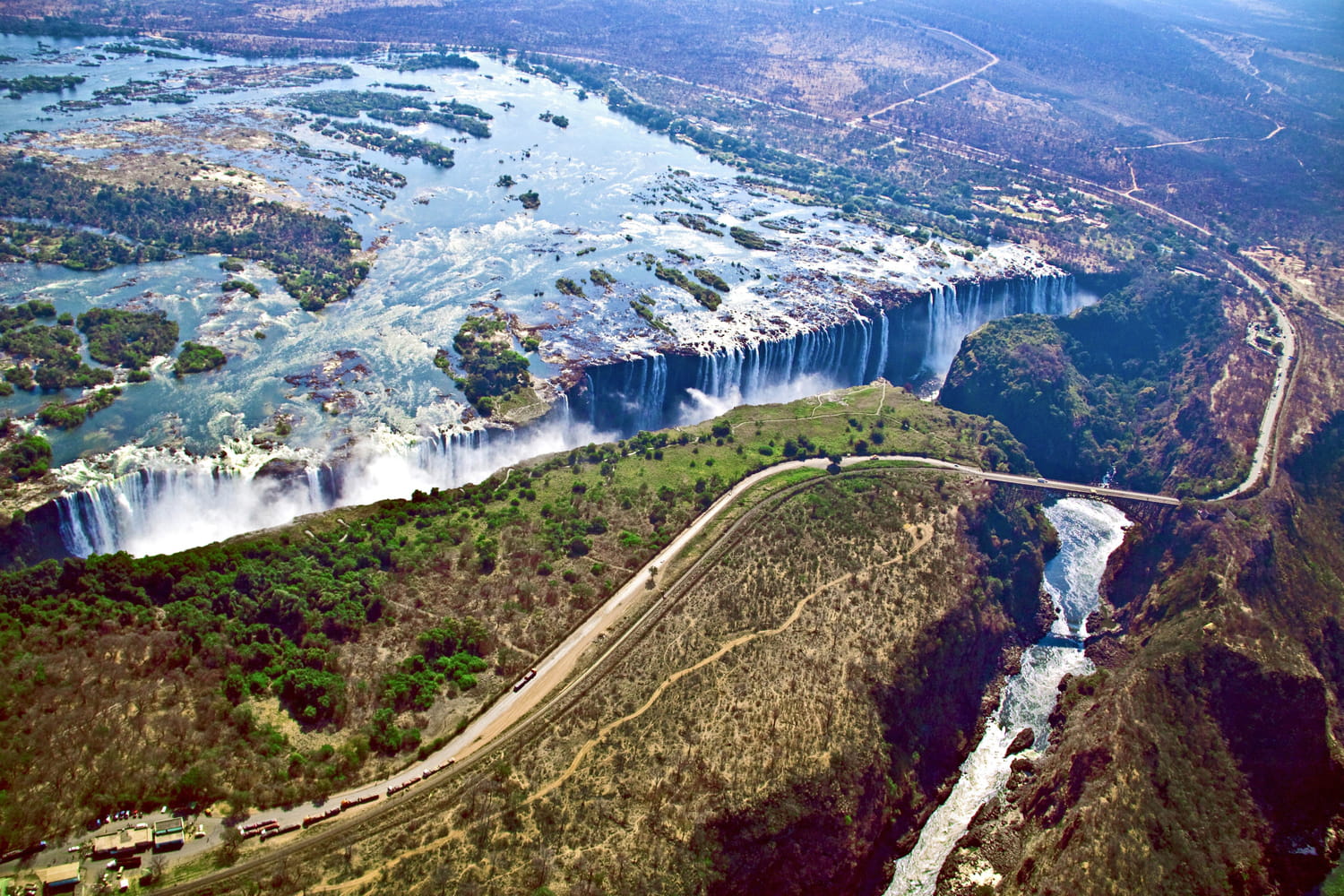 Tout commence par un site naturel classé au patrimoine mondial de l'Unesco, connu pour être l'une des chutes d'eau les plus impressionnantes au monde : les Chutes Victoria. Leur largeur spectaculaire et la puissance du fleuve qui s'y engouffre en font un aimant à visiteurs. Les points de vue aménagés permettent d'en mesurer l'ampleur sous différents angles, à pied ou depuis les airs grâce à des excursions touristiques lors de survols en hélicoptère. En saison, les voyageurs les plus audacieux peuvent même se baigner dans un bassin naturel suspendu au bord du vide, une expérience encadrée qui s'est imposée comme l'une des images fortes du lieu.