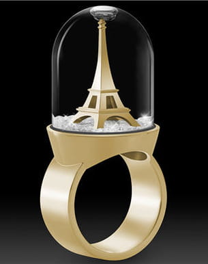 La maison joaillère lance "Paris", une collection de bagues inspirées par la Ville Lumière. On y découvre notamment ce sublime bijou baptisé "Paris sous la neige" composé d'un dôme en verre soufflé d'une transparence cristalline, protégeant une Tour Eiffel en or 18 carats et sa neige de diamants en mouvement... Plus qu'un bijou, une vraie petite merveille.