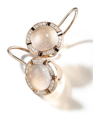 Après la haute couture, c'est au tour des maisons joallières de lancer des collections croisières. Chaumet se lance le premier avec sa sublime ligne Class One, composée d'une vingtaine de bijoux en or blanc, jaune ou rose, sertis de diamants, citrines, topaze, quartz ou pierres de lune. On aime particulièrement la finesse de ces dormeuses en or rose 18 carats, serties de 36 diamants taille brillant et de 2 quartz roses taille cabochon de 5 carats au total.