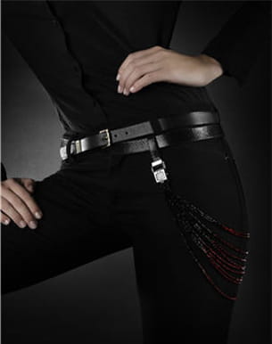 Sac à main, talons aiguille, gants et même ceinture... Autant d'accessoires qui proposent une lecture insolite du temps. Ce modèle de ceinture, avec son cadran relié à de fines chaînes, n'est pas sans évoquer les montres à gousset d'antan.