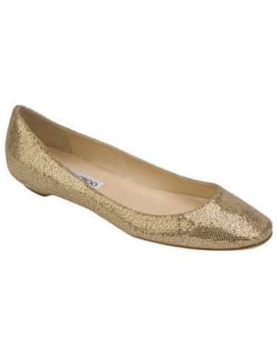 Impossible de se passer d'une paire de ballerines pour trotter le pied léger. Ce modèle en cuir et tissu doré s'adapte aussi bien en journée avec un jean qu'en soirée avec une robe. La Collection Choo 24/7 accompagne la femme du matin jusqu'au soir.