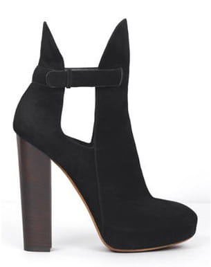 Raffinées, design et définitivement modernes, ces bottines d'une allure folle signées Céline nous séduisent pour leur côté unique. Le talon bois nous enchante tandis que le daim noir se marie avec toutes nos tenues. On les aime déjà ! Collection Automne-Hiver 2010-2011