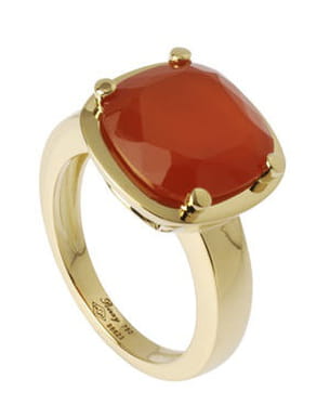 Tout droit issue de la nouvelle collection Poiray, cette bague illumine les élégantes de l'été avec sa Cornaline. L'association avec l'or jaune reste des plus harmonieuses et la forme antik de la pierre, résolument moderne. Un mariage réussi.
