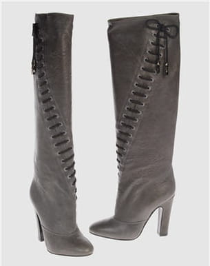 Façon corset, ces bottes de Nina Ricci subliment les jambes en leur donnant une allure sexy. Leur coloris gris les rend résolument tendance cet hiver. A accorder avec une robe pull ou un short pour ne pas prendre froid cet hiver.