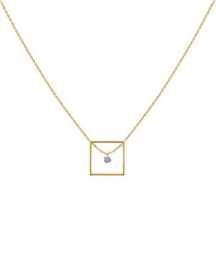 La marque La Brune & La Blonde bouscule les codes de la joaillerie avec ce collier où le diamant s'offre une touche de liberté posé au centre d'un carré. Un design résolument graphique pour un bijou qui sort de l'ordinaire.