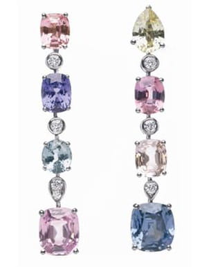 Symbole de sincérité et de fidélité, le saphir est au cœur de la nouvelle collection Dior Joaillerie, baptisée "Trésor du Château Hanté". D'un raffinement et d'une gaieté extrêmes, ces boucles d'oreilles en or blanc laissent place à la légèreté des pierres aux multiples couleurs. Entre saphir rose, saphir violet, saphir jaune, ressortent aussi de précieux diamants pour un rendu juste divin.