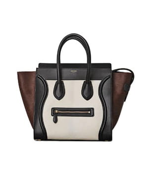 Vu au bras de nombreuses stars, ce modèle phare de la maison Céline s'impose comme l'un des it-bags favoris des modeuses. Sa forme originale se voit soulignée par le jeu de matières et de coloris.