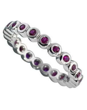 Chez Gay Frères, maison fondée en 1835 par Jean-Pierre Gay et Gaspard Tissot, on trouve notamment un ravissant anneau qui séduite par sa simplicité. L'alliance de l'or blanc et des rubis est une belle réussite.