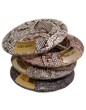 Cette saison, on annonce la couleur : c'est ambiance ethnique et façon python pour toutes ! Commencez donc par un joli bracelet signé Jimmy Choo, proposé dans différents coloris : rose, beige, gris, orange, jaune. Du choix pour pouvoir les associer au mieux à votre dressing estival.