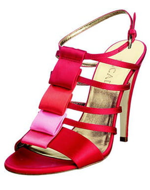 De jolis pieds chaussés de soie... Qui n'en a pas rêvé ? Escada assouvit nos désirs avec ce modèle à talon dont les plissés de soie ornent le cou-de-pied en un joli camaïeu de rouge.