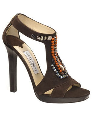 On craque forcément pour ces sandales qui s'inscrivent dans la tendance ethnique. Le veau velours marron est rebrodé de coquillages et de perles pour un effet chic et sophistiqué. De quoi vous donner le plus joli des cous-de-pied !
