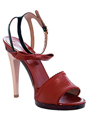 Un joli rouge profond, il n'y a rien de tel pour égayer une tenue ! Sur ce modèle signé Chloé, on aime les détails comme ce joli nœud qui vient orner la cheville, le cuir délicatement cranté sur les orteils, ou encore le talon d'un joli rose poudré qui vient jouer les contrastes.
