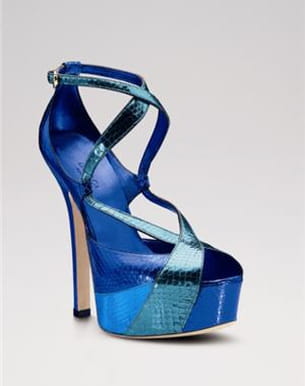 Envie d'une cambrure de rêve et de faire des envieuses partout où vous passez ? Avec ces sandales signées Gucci, c'est succès garanti. Du bleu et du turquoise pour un rendu électrique et glamour, du python pour la note luxueuse et raffinée et une hauteur à couper le souffle... Voilà de quoi être glamour jusqu'au bout des ongles. Et pas de panique pour supporter ce talon vertigineux, une plateforme rehausse le devant du pied. Quoi demander de plus ?
