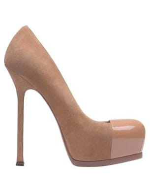 Comble du chic, cette paire d'escarpins Yves Saint Laurent nous fait tout simplement rêver. On craque pour sa forme des plus actuelles mais aussi pour son coloris naturel et tout en délicatesse, sans oublier le mariage des cuirs verni et suède. De quoi combler les plus éprises de raffinement. Collection automne-hiver 2011-2012