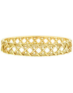 Tout en délicatesse, Victoire de Castellane s'est inspirée du motif cannage pour sa nouvelle ligne baptisée "My Dior". Un motif qui n'a cessé d'être dans la maison depuis les années 1950 où les bustes de paille de ce treillage de l'artiste Janine Janet décoraient les vitrines... Ainsi aujourd'hui, on découvre une collection de bijoux aux fils torsadés et cordelettes entrelacées, telle une maille d'or tressée puis ciselée, à l'image de ce sublime bracelet or jaune. On salue une fois de plus le magnifique travail artisanal qui assure ce petit supplément d'âme des plus précieux.