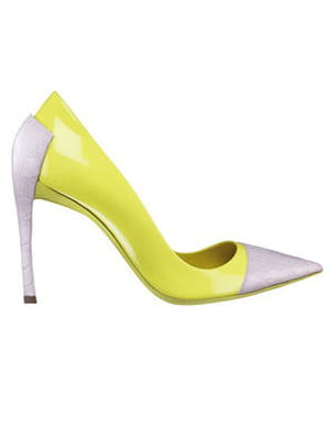 Escarpins pointus en cuir glacé jaune et crocodile rose