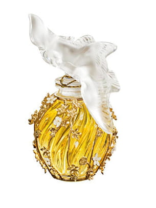 Né en 1948, L'Air du Temps fut le premier floral épicé de l'histoire de la Haute Parfumerie. Le flacon, tout en cristal Lalique, revêt aujourd'hui son plus bel habit.  L'atelier Desrues a donc semé des fleurs dorées sur l'ensemble des courbes du flacon. Cette collection exclusive se compose de 17 exemplaires seulement. Chacun d'entre eux est unique et numéroté.