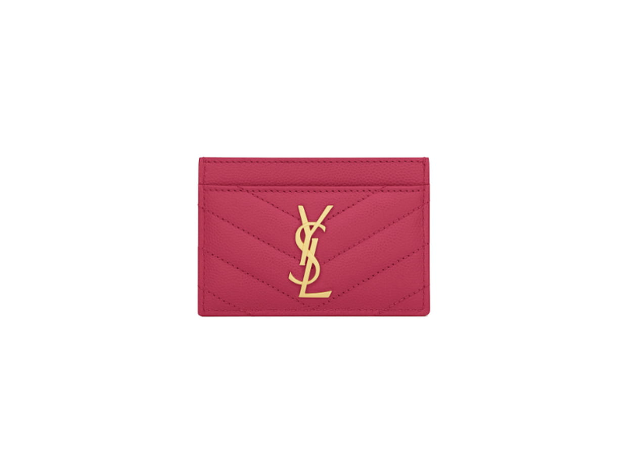 Le monogramme en métal doré et le cuir fuchsia matelassé de ce porte-carte font de lui un objet raffiné, au comble de la féminité. (Prix : 175 euros. Site : www.ysl.com)