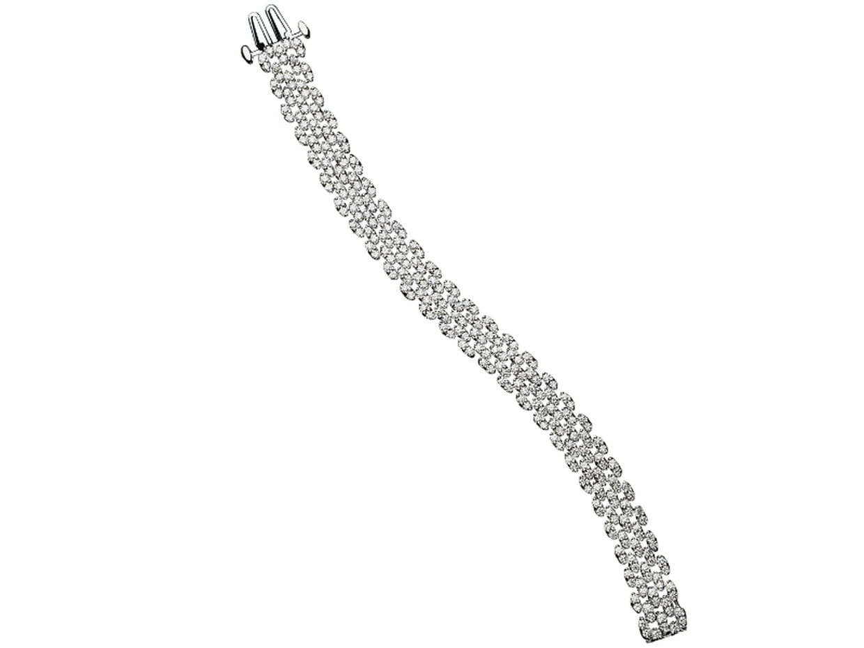 Pour changer des bijoux en forme de coeur très "connotés", pourquoi ne pas opter pour un somptueux bracelet 5 rangs souple en or blanc et diamants qui viendra habiller délicatement le poignet féminin. Le bracelet Mauboussin intitulé "Je le veux" en dit long sur le message qu'il délivre et liera les couples à jamais. (Prix : 33.370 euros / www.mauboussin.fr).