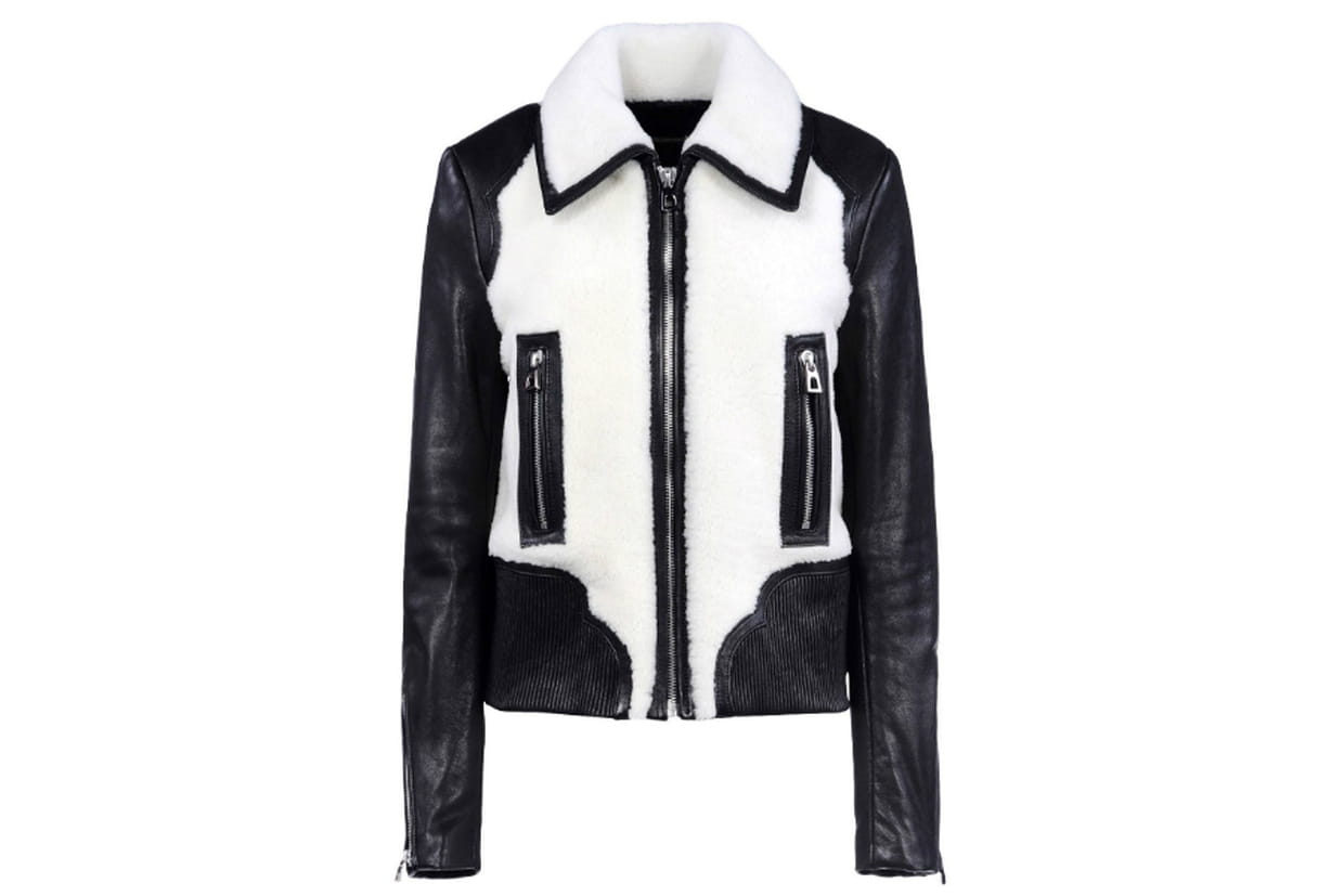 Veste bicolore et bimatière en cuir et peau de laine de Barbara Bui