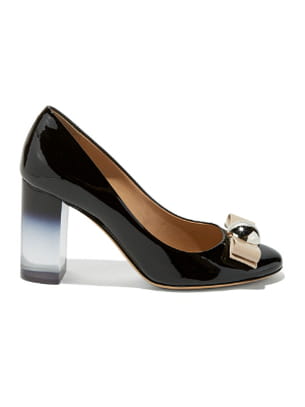 Chaussures à talons plexiglas et bouts ronds en cuir vernis avec nœud de Salvatore Ferragamo