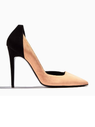 Chaussures à talons aiguilles et bouts pointus bicolores en veau velours nude et noir de Pierre Hardy
