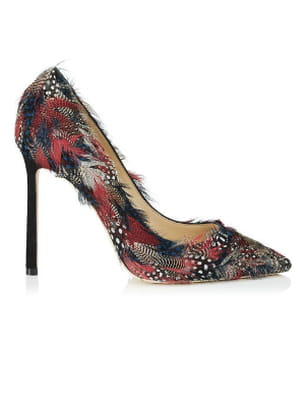 Chaussures à talons aiguilles et bouts pointus bordeaux en cuir et plumes de Jimmy Choo