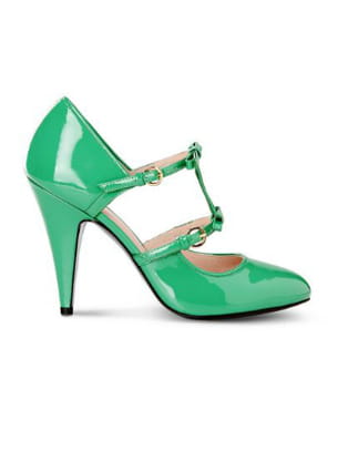 Chaussures à talons et bout en amande en cuir verni vert de Moschino