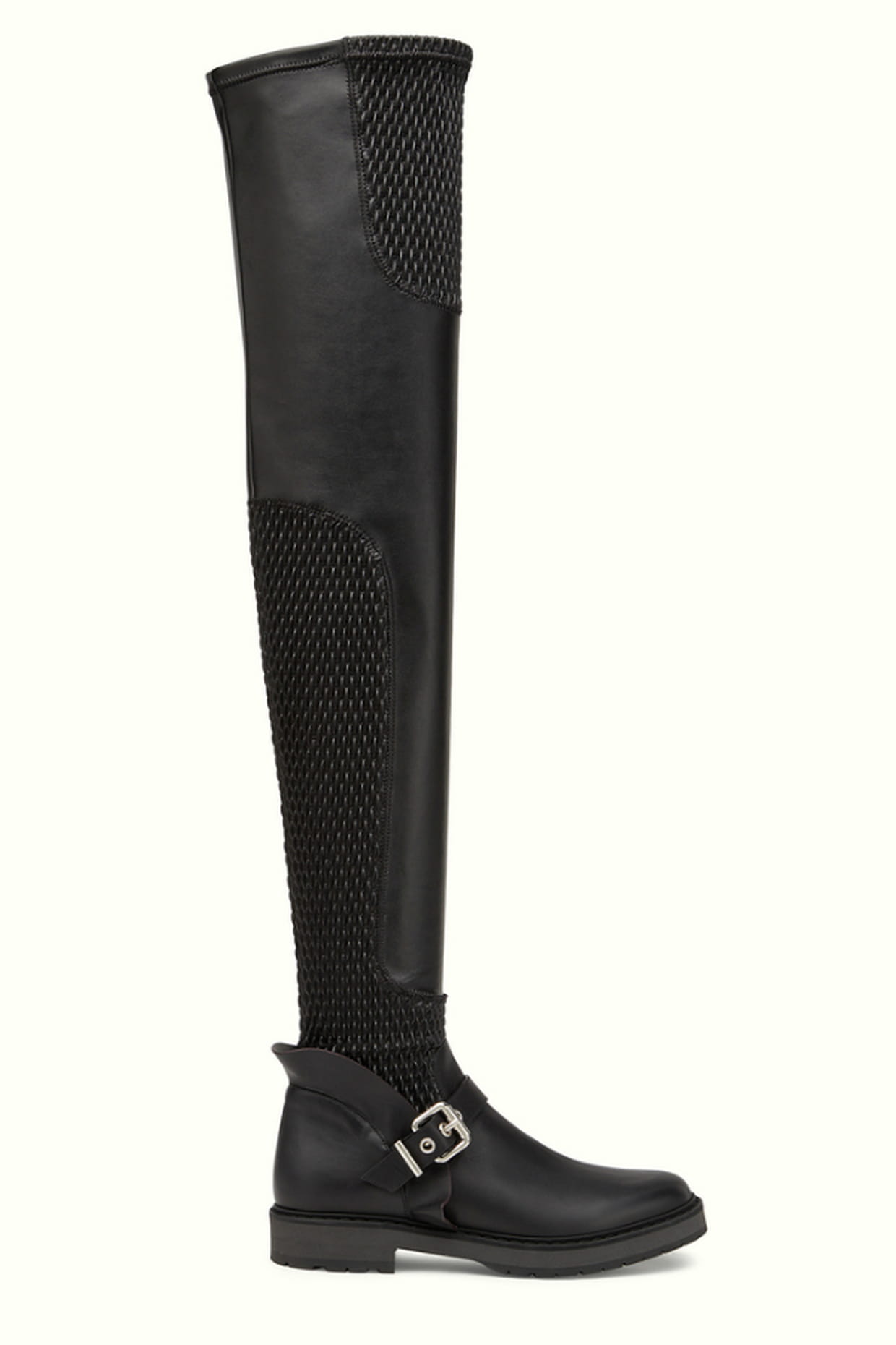Cuissardes en cuir noir texturé à boucle de Fendi