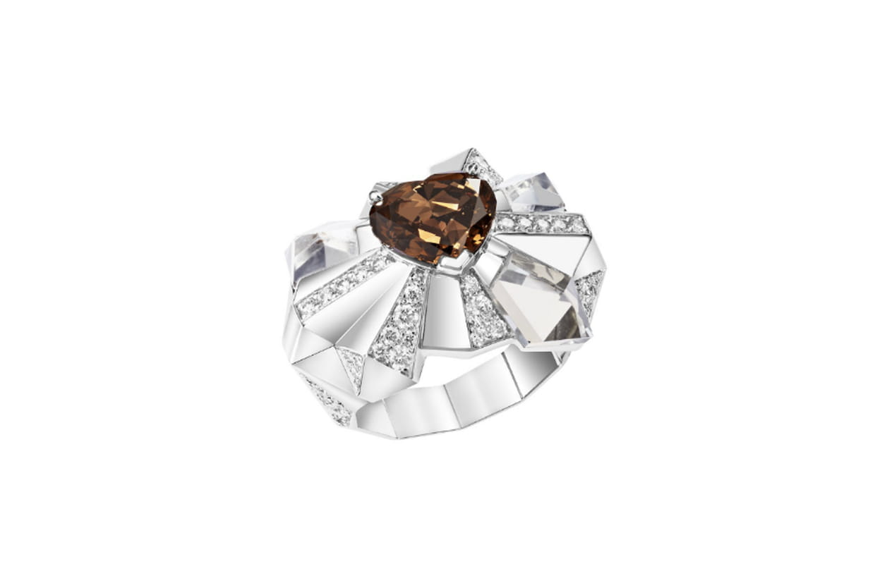 Bague en or blanc avec diamants blancs et diamant chocolat taillé en cur de 2,57 carats de Lorenz Baumer