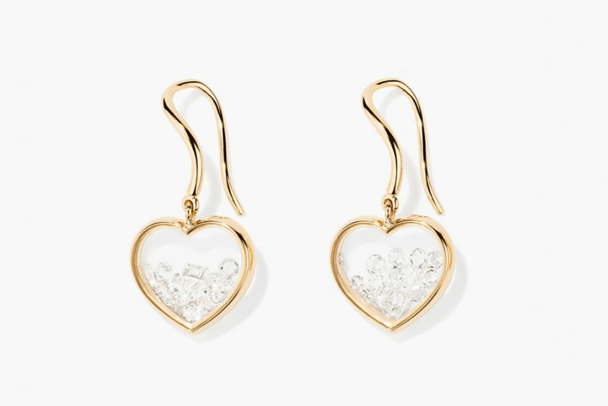 Boucles d'oreilles en verre saphir et or jaune 18 carats en forme de cœur avec diamants 1.4 carats d'Aurélie Bidemann