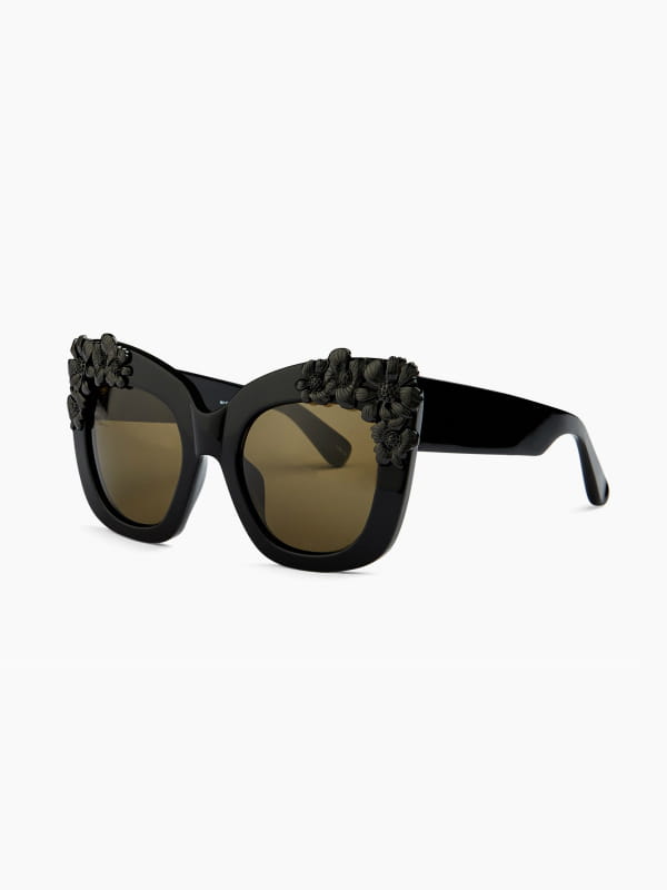 Solaires noires à large monture avec détails fleuris de Linda Farrow X Erdem