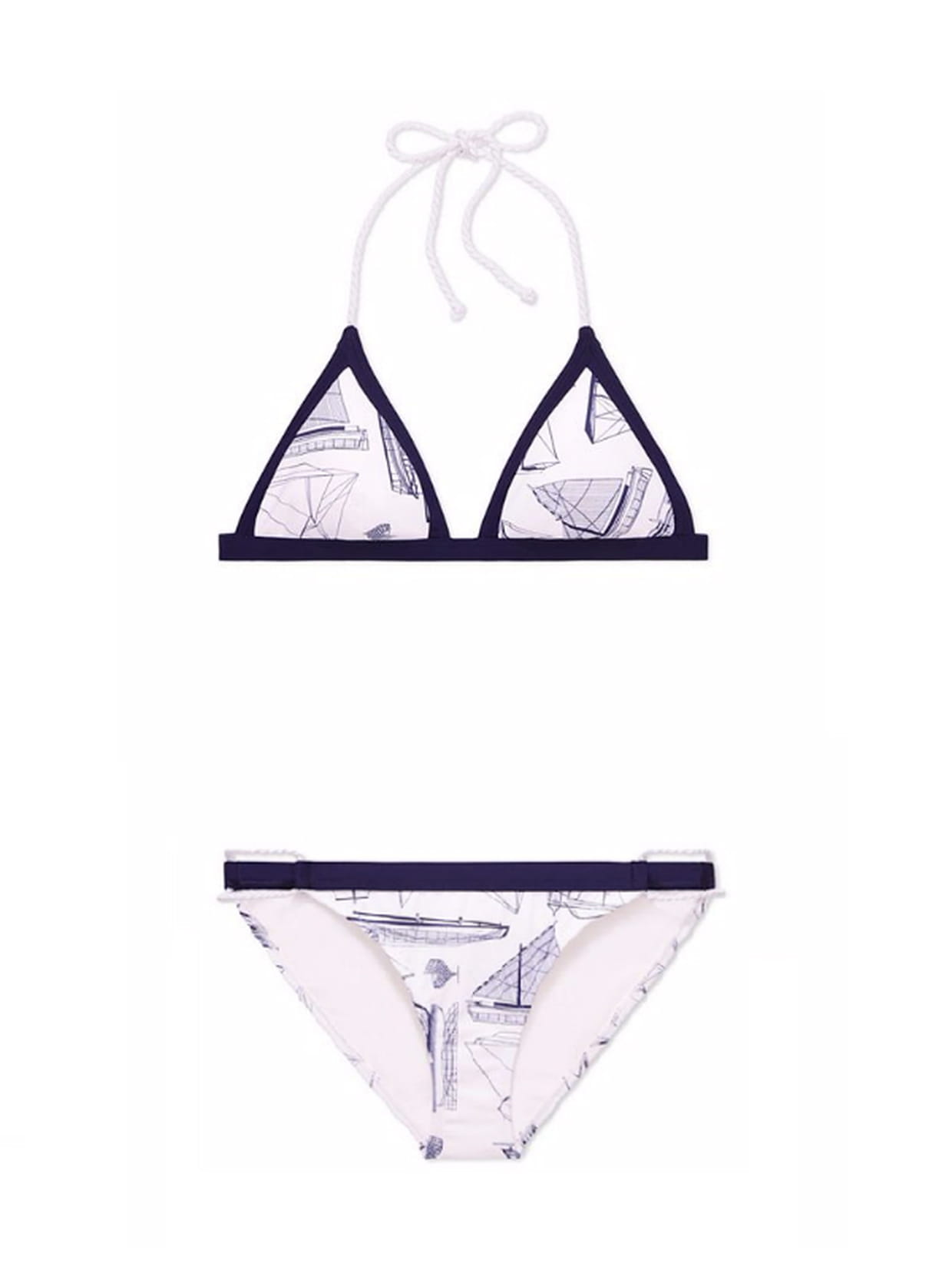 Maillot de bain deux pièces blanc et bleu marine imprimé bateaux de Tory Burch