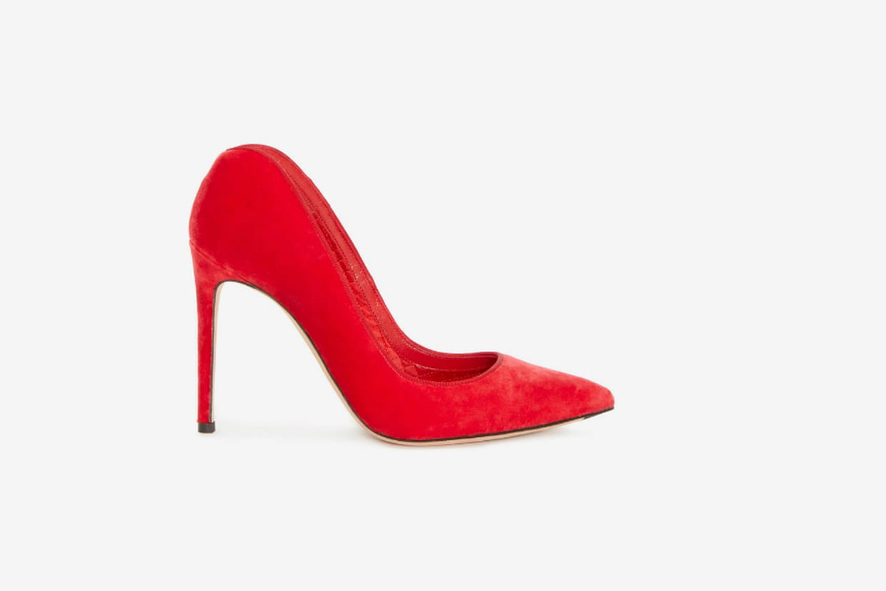 Escarpins en velours rouge à bout pointu avec coupe en forme de coeur sur la cheville de Alexander McQueen