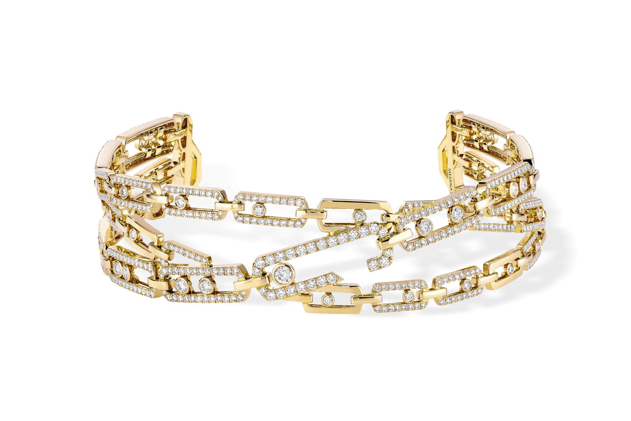 Collier semi pavé de diamants en or jaune 18 carats de Messika X Gigi Hadid