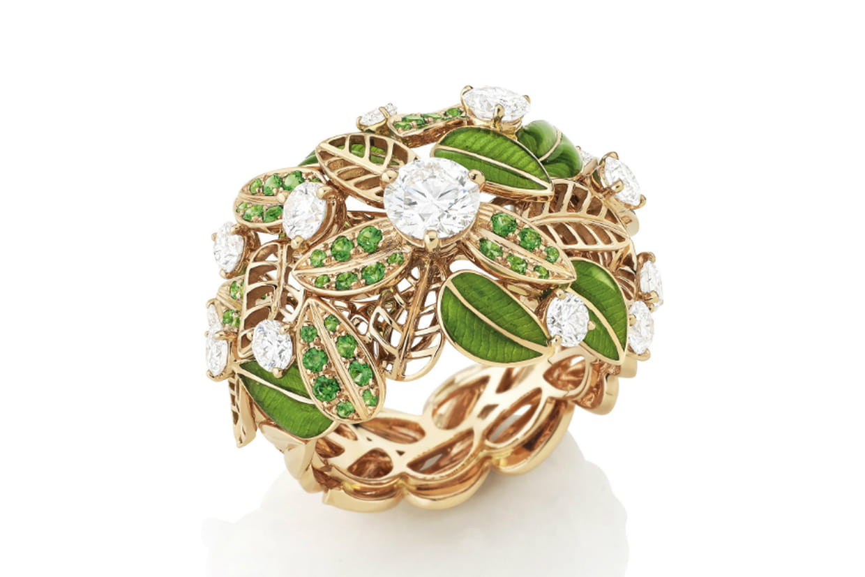Bague en or rose, émail, tsavorites et diamants collection Isola Madre de Mellerio